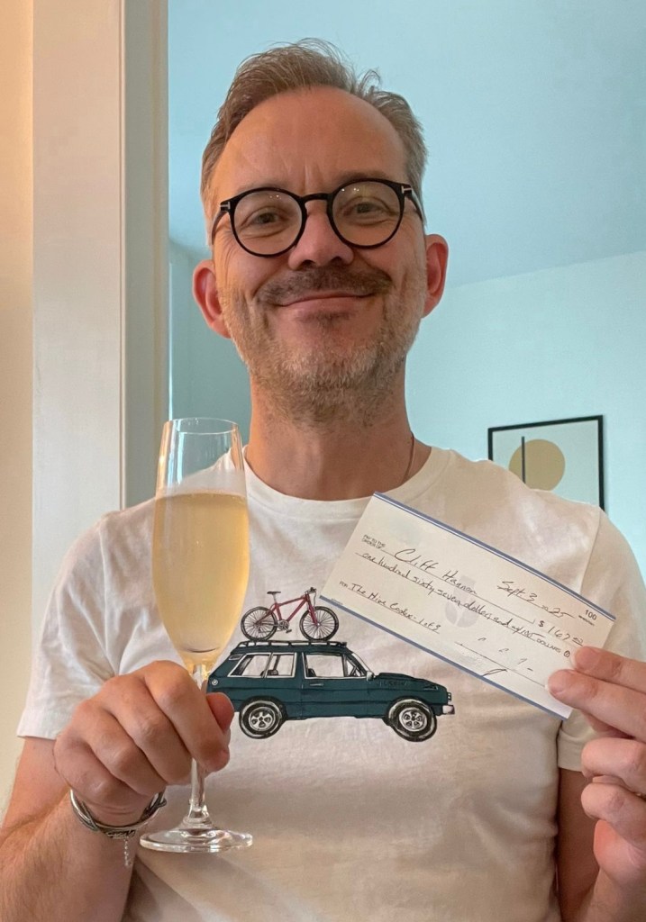 ps: The cheque will be framed and have pride of place on the wall in my Writer’s Retreat!